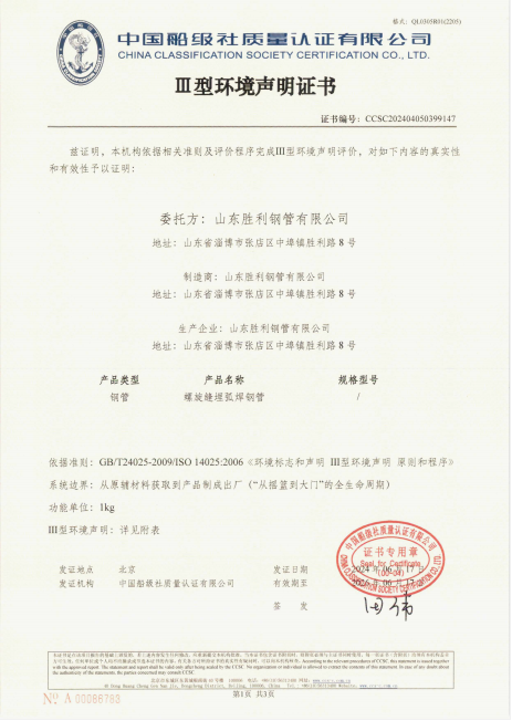 ? 2024年6月份,公司進行了螺旋縫埋弧焊接鋼管和防腐鋼管的碳足跡、Ⅲ型環(huán)境聲明評價工作。本次評價系統(tǒng)邊界均是 “從搖籃到大門”的全生命周期評價,即從原輔材料獲取到產品制成出廠全流程,6月中旬公司取得了碳足跡評價及環(huán)境聲明證書。本次評價更清晰的界定了公司產品生產過程中各個環(huán)節(jié)的碳足跡數據,在排除原材料因素帶來的影響外,公司需結合相應數據,探索進一步節(jié)能減排的可行性,同時本次評價為后續(xù)公司參與重要管線投標提供了有力的數據支撐。