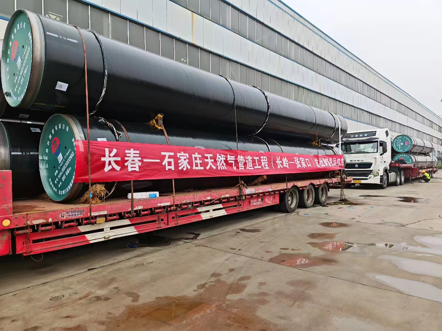 ? ?助力國家能源管道建設,凝聚力量供保長石管道。10月08日上午,長春一石家莊天然氣管道工程(長嶺一張家口) 首批鋼管發(fā)運儀式在山東勝利鋼管有限公司舉行。公司副總經(jīng)理王碩、銷售公司、物流中心及管線監(jiān)理、物流承運單位參加了本次發(fā)運儀式。首日首批次該項目用Φ1422*17.8mm常溫型3LPE普通級+環(huán)氧型內(nèi)減阻涂層螺旋縫埋弧焊鋼管裝車由山東勝利發(fā)往內(nèi)蒙古赤峰中轉(zhuǎn)站,標志著公司承接的長石天然氣管道項目產(chǎn)品正式陸續(xù)開始交貨。