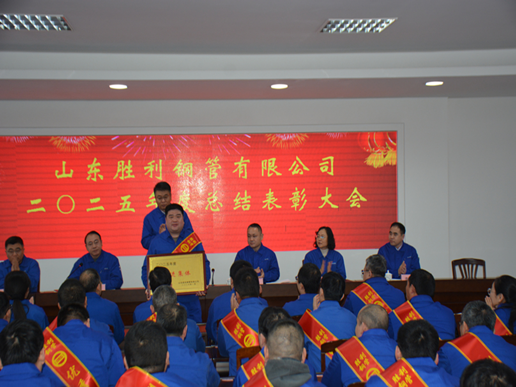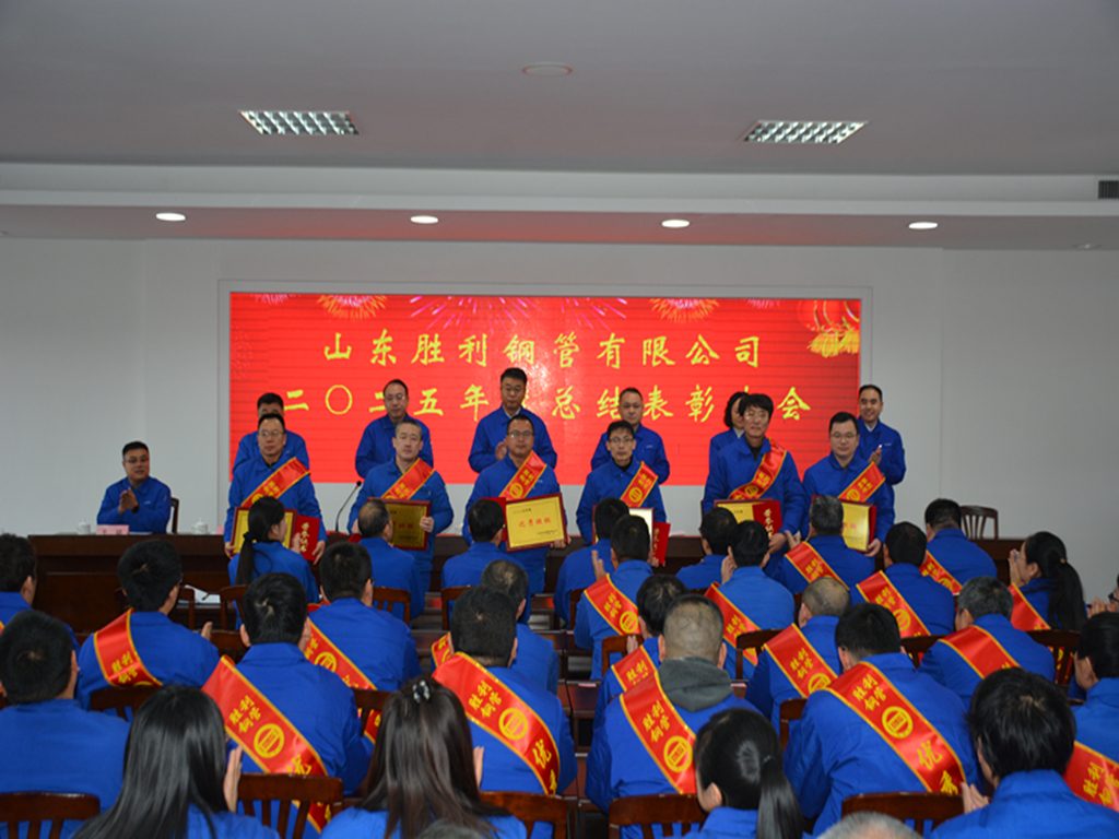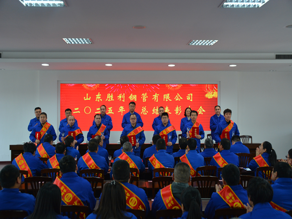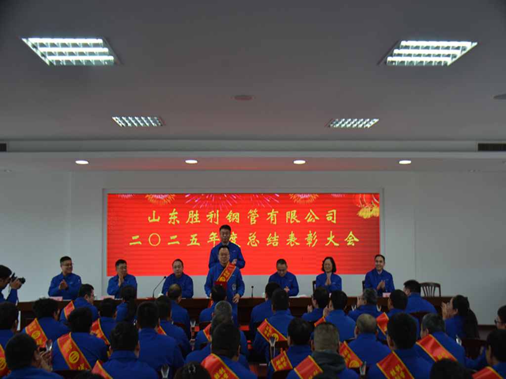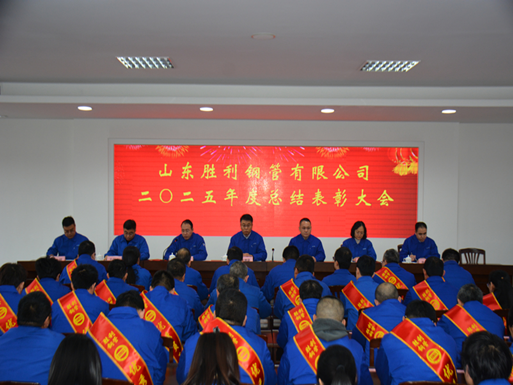 2026 年 1 月 17 日上午,山東勝利鋼管有限公司2025年度總結(jié)表彰大會在四樓會議室隆重舉行。伴隨著莊嚴雄壯的國歌聲,大會正式拉開帷幕。公司中高層管理人員、員工代表及全體受表彰人員齊聚一堂,共同回顧2025年的奮進歷程,擘畫2026年的發(fā)展藍圖。
